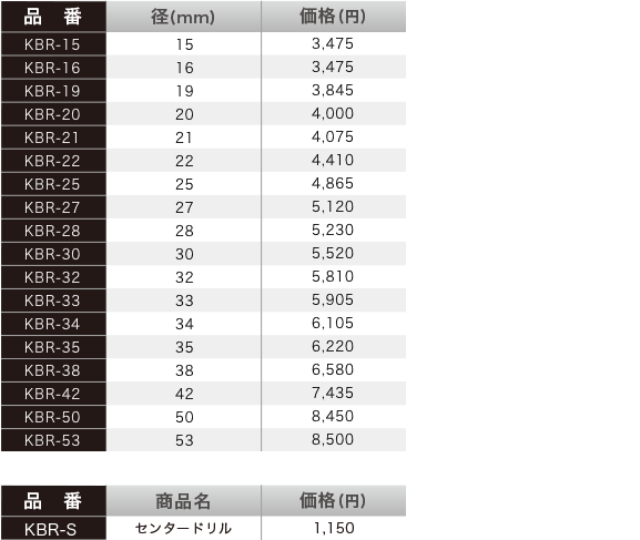 ツバ無しタイプで、複合的な材料も貫通可能です。